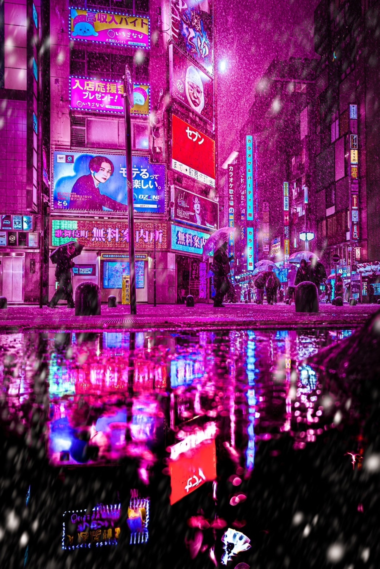 I took this photo in Kabukicho, Shinjuku, on a snowy night.