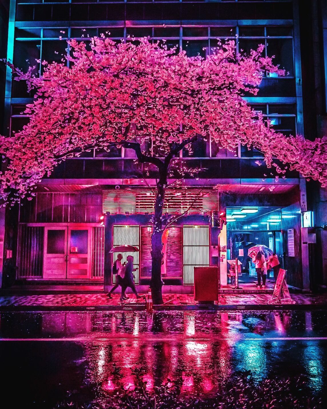 The photo was taken at a famous cherry blossom spot in Nihonbashi.